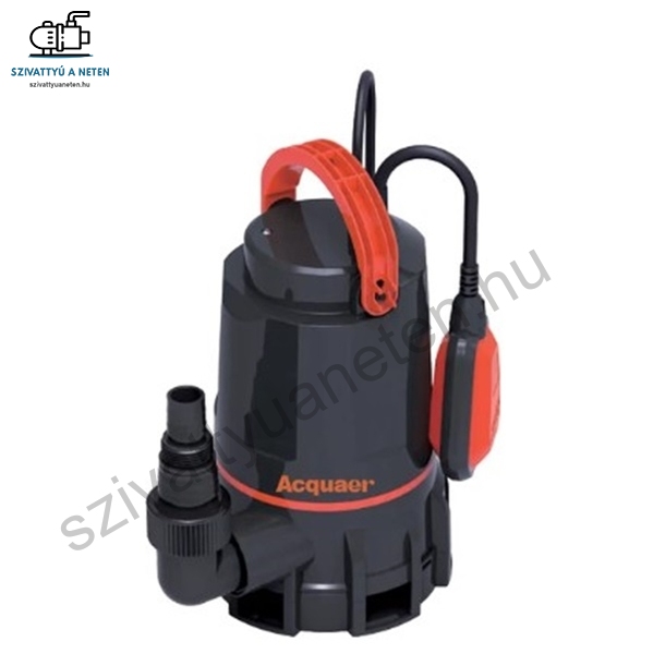 Az ACQUAER EKS-550PW 550W-os motorral és műszaki műanyag házzal szerelt kerti merülő szivattyú, mely megbízható megoldást kínál tiszta víz mellett még szennyezőanyagot vagy lebegő részecskéket is tartalmazó víz szállítására. Fő felhasználási területük ásott kutak, tavak, elárasztott pincék, építési gödrök szennyezett vizének szivattyúzása. A merülő szivattyúkra általában jellemző, hogy nagy mennyiségű víz szállítására képesek, de ehhez csak kis nyomás társul, így pl. szórófejes öntözésre nem alkalmasak. A szivattyú egyszerű felépítésű és kényelmesen szállítható a rajta lévő hordozófogónak és könnyű súlyának köszönhetően. A terméket 10m kábellel szállítjuk és tartozéka még egy szabadon elfordítható 90° könyök, ami használatával elkerülhető a tömlő megtörése. A gyors beüzemelést segíti még egy a szokásos slag méretekhez illeszkedő univerzális tömlő csatlakozó is. A minél nagyobb vízszállítás elérése érdekében javasoljuk nyomó oldalon a nagyobb 1” (25mm) belső átmérőjű locsoló cső használatát. A szivattyú be/ki kapcsolását úszókapcsoló végzi, ami alacsony vízszintnél kikapcsol és véd a szárazon futás ellen, illetve emelkedő vízállásnál bekapcsolja és üzemben tartja a szivattyút. A be és kikapcsolási szintmagasság egyszerűen szabályozható az úszókapcsoló tartófülbe való befűzésével.