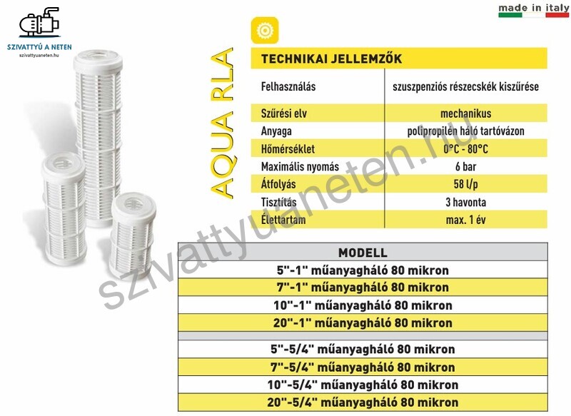 Az Aqua RLA 20-1 coll mosható szűrőbetétet szuszpenziós részecskék szűrésére, mechanikus lebegő szennyeződések szűrésére javasoljuk. Homoskos víz szűrésére. A szűrőbetét magassága 500 mm. Előszeretettel választják ezt a típusú szűrőbetétet a szivattyúkhoz, öntözőrendszerekhez.