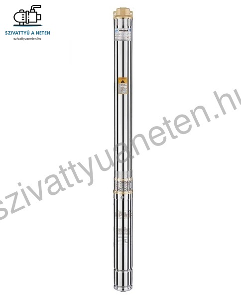 Az Aqualift 3SRm 112-0,37 búvárszivattyú csőkút szivattyú három colos átmérővel, azaz 76 mm-es külső átmérővel rendelkezik, így az a 110 mm-nél kisebb átmérőjű fúrt kutakban is kényelmesen elfér és üzemeltethető. A négyeres külső kondenzátoros olajhűtéses motor gyári 20 méteres elektromos vezetékhosszal rendelkezik, melynek hosszabbítását igény esetén tudjuk vállalni. Ennek aktuális költségeiről ügyfélszolgálatunkon tájékozódhat. Az Aqualift 3SRm 112-0,37 csőkút szivattyút külső indítódobozzal együtt szállítjuk, melyben megtalálható az indítókondenzátor és egy hőkioldó kapcsoló is.