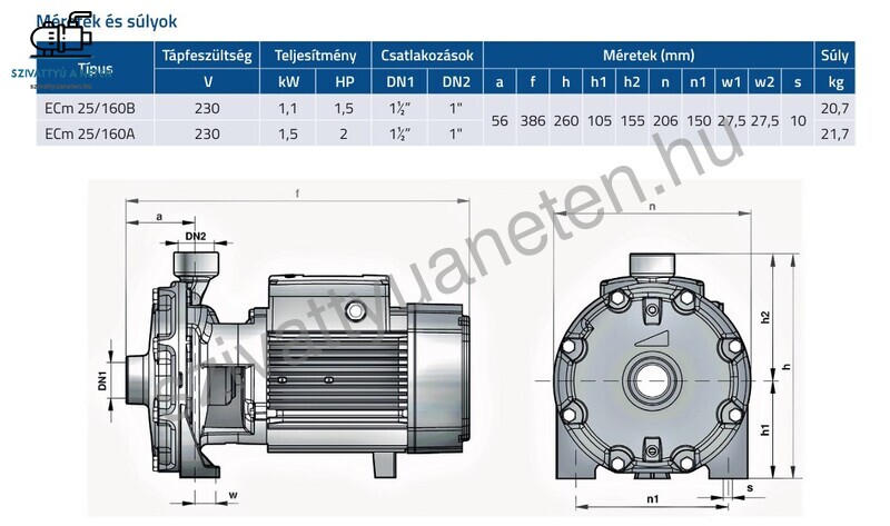 Egylépcsős centrifugál szivattyú, öntvény szívóházzal. Aquastrong ECm 25/160B menetes csatlakozással, megbízható minőségben, szivattyú szakkereskedőtől, biztos kézből.