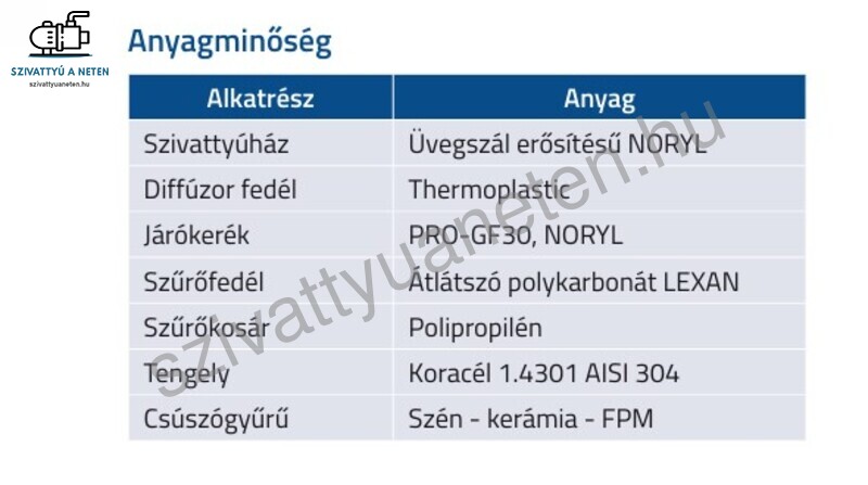 Aquastrong EKP 1104 önfelszívó medence vízforgató szivattyú beépített szűrővel. A szivattyúház kiváló minőségű műanyagból készül, mely ellenáll a korróziónak és a homokeróziónak. Alapra szerelt kialakítással. Az Aquastrong EKP 1104 ideális uszoda, közepes, vagy nagy medence víz forgatására, tisztavíz és enyhén szennyezett vízre, lebegő szilárd szennyeződések szűrése, szökőkutakhoz. A szállított víz folyadék hőmérséklete maximum + 35 fok lehet. Maximális szívómélysége 3,5 méter. Az Aquastrong EKP 1104 medence vízforgató szivattyú egyfázisú 230V-os motorral kapható, mely réz tekercseléssel készül, F szigetelés osztállyal, és IP54 védettséggel. A tekercsben termikus hővédelem is beépítésre került. A szivattyú ház üvegszál erősítésű NORYL-ból, a diifúrzórfedél thermoplastic-ból,a járókerék PRO-GF30, NORYL-ból, a szűrőházfedél átlátszó polykarbonát LEXAN-ból, a szűrőkosár pedig polipropilén-ből készül. Az Aquastrong EKP 1104 motor tengelye koracél 1.4301 AISI 304. Jó minőségű tengelytömítéssel készül, szén-kerámia. FPM kombinációval.