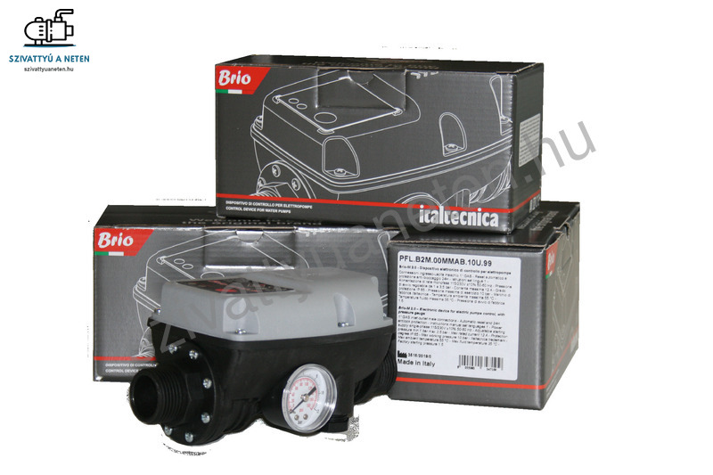 A Brio B2M elektromos áramláskapcsoló, szivattyúvezérlő a Brio 2000-MT megújult változata, mely szintén automatizálja a szivattyú indítását és leállítását és szárazon futás elleni védelmet biztosít. A készülék minimális karbantartást igényel. Egy hidrofor rendszert képesek vagyunk vele modernizálni, hiszen a segítségével a nyomáskapcsoló és a hidrofor tartály elhanyagolható a rendszerből. Házi vízellátás esetében azonban mi személy szerint a hidrofor tartályos kialakítást javasoljuk. Öntözési feladatok ellátásában viszont praktikus megoldás a Brio B2M áramláskapcsoló használata.