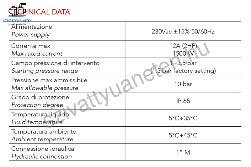 Megengedett maximális nyomás: 10 bar