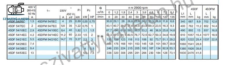 A Calpeda 4SDF 54/10EC búvárszivattyú gyártása során minden felhasznált alapanyag csak és kizárólag kiváló minőségű lehet, ez alapelv. Ennek köszönhetően a szivattyú hidraulika akár 300 g/m3 homoktűrő képességgel is rendelkezhet. A Calpeda 4 colos csőkút szivattyúkat előszeretettel használják lakóházak vízellátására, mezőgazdaságban gyümölcs és zöldség öntözéshez. A nagyobb emelőmagasságú és vízhozamú Calpeda 4SD szivattyúkat iparterületek vízellátására, tüzi víztározók biztonsági szivattyújának, de akár hidroglóbusz feltöltésére is alkalmasak. Mégis jellemzően fúrt kutakban alkalmazzák leggyakrabban. A minimum kútátmérő 110 mm. Nagyobb , hosszabb típusoknál fontos, hogy a kút egyenes legyen, és a perforációk ne akadályozzák a lehelyezést. Ebben az esetben inkább legyen 125 mm-es a kút átmérő. A Calpeda 4SDF 54/10EC búvárszivattyú motorja nem rendelkezik termikus hővédelemmel, ezért a biztonságos üzemeltetés érdekében érdemes megfelelő motorvédelemről gondoskodni. Erről ügyfélszolgálatunkon keresztül kaphat megfelelő segítséget.