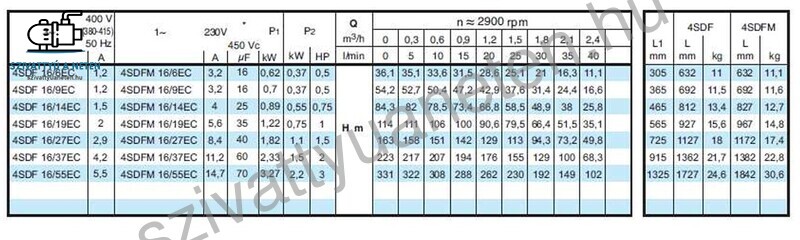 A Calpeda 4SDFM 16/14EC búvárszivattyú gyártása során minden felhasznált alapanyag csak és kizárólag kiváló minőségű lehet, ez alapelv. Ennek köszönhetően a szivattyú hidraulika akár 300 g/m3 homoktűrő képességgel is rendelkezhet. A Calpeda 4 colos csőkút szivattyúkat előszeretettel használják lakóházak vízellátására, mezőgazdaságban gyümölcs és zöldség öntözéshez. A nagyobb emelőmagasságú és vízhozamú Calpeda 4SD szivattyúkat iparterületek vízellátására, tüzi víztározók biztonsági szivattyújának, de akár hidroglóbusz feltöltésére is alkalmasak. Mégis jellemzően fúrt kutakban alkalmazzák leggyakrabban. A minimum kútátmérő 110 mm. Nagyobb , hosszabb típusoknál fontos, hogy a kút egyenes legyen, és a perforációk ne akadályozzák a lehelyezést. Ebben az esetben inkább legyen 125 mm-es a kút átmérő. A Calpeda 4SDFM 16/14EC búvárszivattyú külsőindítókondenzátoros modell. A működtetéshez indítódoboz szükséges. Az indítódoboz választékunkat a szivattyú vezérlés, indítódoboz menüpont alatt találja, ahol motorteljesítmény alapján választhat megfelelő indítódobozt.
