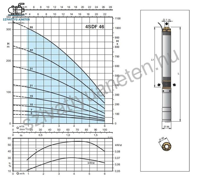 A Calpeda 4SDFM 46/15EC búvárszivattyú gyártása során minden felhasznált alapanyag csak és kizárólag kiváló minőségű lehet, ez alapelv. Ennek köszönhetően a szivattyú hidraulika akár 300 g/m3 homoktűrő képességgel is rendelkezhet. A Calpeda 4 colos csőkút szivattyúkat előszeretettel használják lakóházak vízellátására, mezőgazdaságban gyümölcs és zöldség öntözéshez. A nagyobb emelőmagasságú és vízhozamú Calpeda 4SD szivattyúkat iparterületek vízellátására, tüzi víztározók biztonsági szivattyújának, de akár hidroglóbusz feltöltésére is alkalmasak. Mégis jellemzően fúrt kutakban alkalmazzák leggyakrabban. A minimum kútátmérő 110 mm. Nagyobb , hosszabb típusoknál fontos, hogy a kút egyenes legyen, és a perforációk ne akadályozzák a lehelyezést. Ebben az esetben inkább legyen 125 mm-es a kút átmérő. A Calpeda 4SDFM 46/15EC búvárszivattyú külsőindítókondenzátoros modell. A működtetéshez indítódoboz szükséges. Az indítódoboz választékunkat a szivattyú vezérlés, indítódoboz menüpont alatt találja, ahol motorteljesítmény alapján választhat megfelelő indítódobozt.