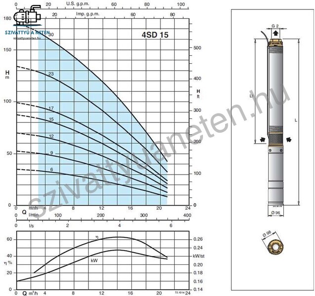 A Calpeda 4SDM 15/9EC búvárszivattyú gyártása során minden felhasznált alapanyag csak és kizárólag kiváló minőségű lehet, ez alapelv. Ennek köszönhetően a szivattyú hidraulika akár 300 g/m3 homoktűrő képességgel is rendelkezhet. A Calpeda 4 colos csőkút szivattyúkat előszeretettel használják lakóházak vízellátására, mezőgazdaságban gyümölcs és zöldség öntözéshez. A nagyobb emelőmagasságú és vízhozamú Calpeda 4SD szivattyúkat iparterületek vízellátására, tüzi víztározók biztonsági szivattyújának, de akár hidroglóbusz feltöltésére is alkalmasak. Mégis jellemzően fúrt kutakban alkalmazzák leggyakrabban. A minimum kútátmérő 110 mm. Nagyobb , hosszabb típusoknál fontos, hogy a kút egyenes legyen, és a perforációk ne akadályozzák a lehelyezést. Ebben az esetben inkább legyen 125 mm-es a kút átmérő. A Calpeda 4SDM 15/9EC búvárszivattyú külsőindítókondenzátoros modell. A működtetéshez indítódoboz szükséges. Az indítódoboz választékunkat a szivattyú vezérlés, indítódoboz menüpont alatt találja, ahol motorteljesítmény alapján választhat megfelelő indítódobozt.