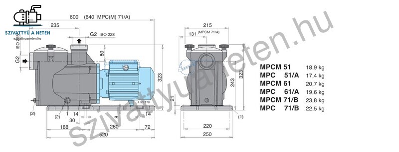 ellenáll a korróziónak és a homok eróziónak. Diffurzor fedél thermoplasticból, a járókerék PRO-GF30 norylból. Az előszűrő fedele átlátszó polikarbonát LEXAN. Az előszűrőben található szűrőkosár anyaga polipropilén. A Calpeda MPC 61 motorja háromfázisú 400V-os réztekercselésű, F szigeteléssel és IPX4 védettséggel rendelkezik. A motor tér védelmét vízbehatolás ellen kiváló minőségű szén-kerámia FPM tengelytömítés biztosítja. Ez a medence szivattyú maximum + 60 fokos vízhőmérsékletig használható. A Calpeda MPC 61 szívóoldali csatlakozása 2 coll belsőmenet, a nyomóoldali csatlakozása pedig szintén 2 coll belső menet. Mindkét csatlakozás AISI 304 rozsdamentes acélgyűrűvel erősítve. A szivattyú motortengelye tartós, erős AISI 303 rozsdamentes acélból. Megfelelő motorvédelemről a biztonságos üzemeltetés érdekében gondoskodni kell!