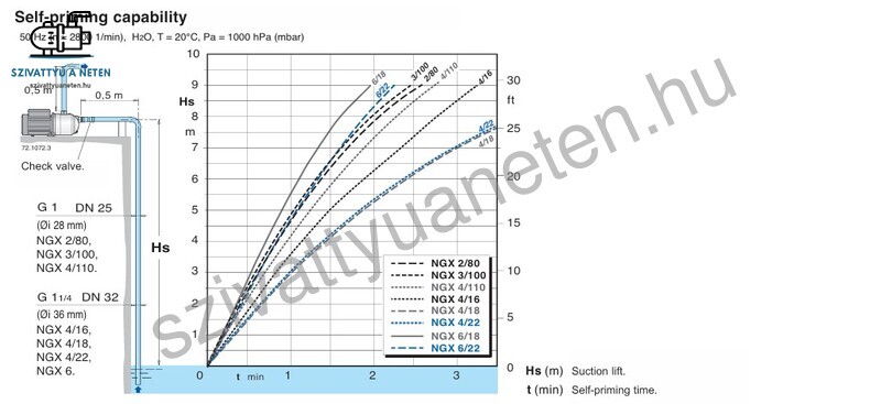 A Calpeda NGX önfelszívó jet rendszerű kerti szivattyú család kifejezetten lakossági felhasználásra készült, magas minőségű alapanyagok felhasználásával a tartósság, megbizhatóság jegyében. A Calpeda nem enged a minőségből! Ennek bizony ára van. Nem kíván az olcsó kerti szivattyúk sorába csatlakozni és a minőségéből engedni. AISI 304 rozsdamentes szívóházzal készül, motor tengelye pedig AISI 430 rozsdamentes acélból. Tengelytömítése, mely vízbehatolás ellen védi a motorteret karbon-kerámia-NBR kombináció, mely rendkívül jó kopásállóságú. A Calpeda NGXm 2/80/A lapátkereke és diffurzor-ejektor egysége PPO-GF20 norylból készülnek, melyek szintén kiváló minőségüek. Szívó és nyomóoldali csatlakozása 1 colos belső menet. Az egyfázisú 230V-os Calpeda NGXm 2/80/A motorja 550W-os és termikus hővédelemmel is rendelkezik. Motorja F szigeteléssel és IP 54 védelmi fokozattal rendelkezik. Maximum +35 fokos tiszta víz szivattyúzására alkalmas, a környezeti hőmérséklet maximuma pedig +40 fok. Maximális szívómélysége 9 méter. Nyomásfokozás esetén a szivattyúházban maximum 8 bar lehet! A Calpeda NGXm 2/80/A kerti szivattyú maximális szállítókapacitása 53,3 liter/perc, mig függőleges nyomómagassága maximum 46,8 méter. Azaz maximum 4,68 bar nyomásra képes.