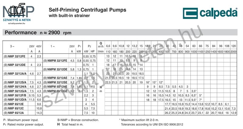 A kiváló minőségű Calpeda NMP 32/12A/A medence szivattyút folyamatos üzemre tervezték. Elsősorban medence vizének forgatására, mozgatására. A rendkívül erős szívóházban a maximális megengedett üzemi nyomás 6 bar. A Calpeda NMP 32/12A/A a megfelelő szűrőberendezéssel egybeépítve remek szolgálatot tesz a medencék vizének tisztán tartásában, mozgatásában. A Calpeda szivattyúkat számos területen alkalmazzák megbízhatóságuk és hosszú élettartamuk miatt. A Calpeda NMP 32/12A/A medence vízforgató szivattyú kiváló minőségű alapanyagok felhasználásával készül, melyek szavatolják a hosszú tartós üzemet. Ennek köszönhetően nem csak lakossági igényeket elégít ki. Kisebb tan medencék, wellness hotelek, szállodák is használják a Calpeda szivattyúkat. A szivóház és a szivattyú járókereke tartós és erős öntöttvasból készül, a motor tengely pedig AISI 303 rozsdamentes acélból. A motorteret kiváló minőségű karbon-kerámia-FPM tengelytömítés védi vízbehatolás ellen. A minőségi csapágyak a viszonylag halk üzemmódot garantálják. A Calpeda NMP 32/12A/A motorja háromfázisú 400V-os F szigetelésű, réz tekercselésű, IP 55 védettséggel. Ez a medence vízforgató szivattyú maximum +60 fokos vízhőmérsékletig használható. Szívó mélység maximum 7 méter. Szívó és nyomó oldali csatlakozás 2 coll belső menettel.