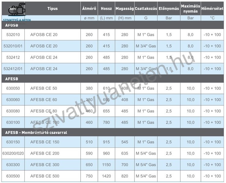 Cimm AFESBCE 50 fekvő hidrofor tartály