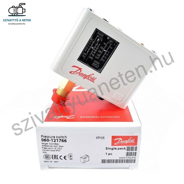 A Danfoss KPI 35 nyomáskapcsoló Lengyelországban készül. Ez a mechanikus nyomáskapcsoló használható olajra, levegőre és vízre egyaránt. Csatlakozása 1/4 colos külső menet. Mivel a Danfoss KPI 35 nyomáskapcsoló ellenáll az ütéseknek és a rezgéseknek is használható olyan rendszerekben is biztonságosan, ahol magasabb rezgészámmal kell számolni.