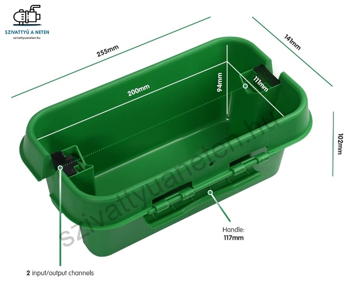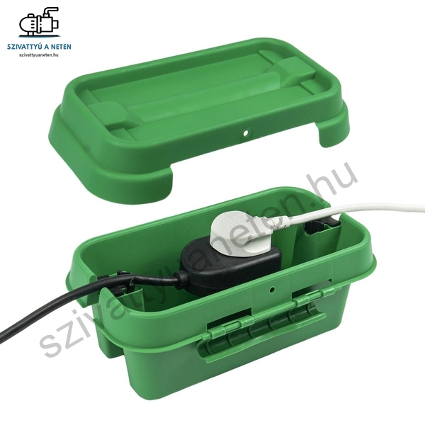 Túlnyúló ajkú fedéllel kifejezetten azért, hogy megakadályozza a víz szivárgását a doboz belsejébe.