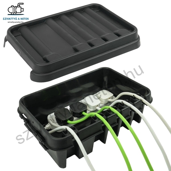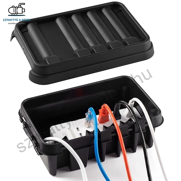 A rugalmas szilikon tömítés a fedél körül és a dobozban található, hogy tökéletesen formázza a kábeleket és aljzatokat, hogy rögzítse őket a helyükön, ami azt jelenti, hogy nincs mozgás vagy szivárgás veszélye.
