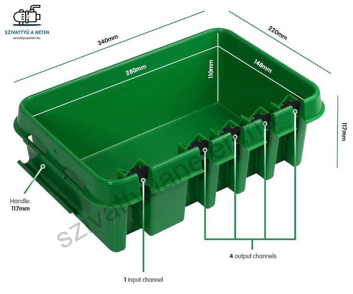 Belső méretek: 280 mm (H) x 148 mm (Szé) x 110 mm (Ma)