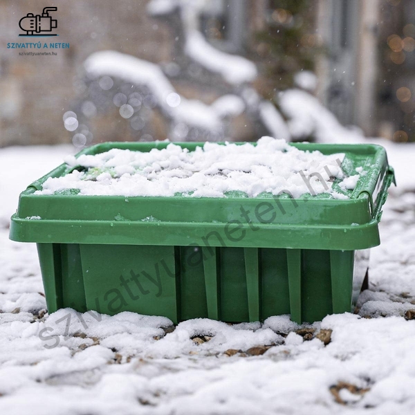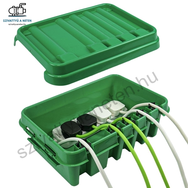 Túlnyúló ajkú fedéllel kifejezetten azért, hogy megakadályozza a víz szivárgását a doboz belsejébe.