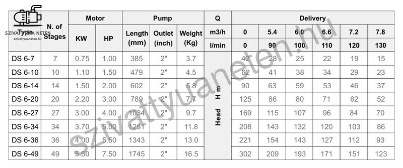 merülő, csőbúvár szivattyú 4 colos méretben