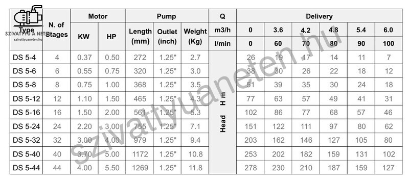 merülő, csőbúvár szivattyú 4 colos méretben