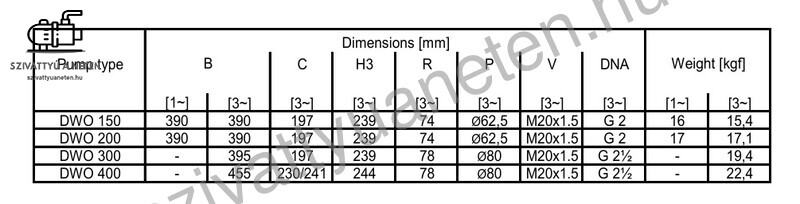 Az Ebara DWO 300 cenrifugál szivattyú műszaki adatai