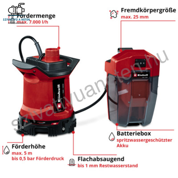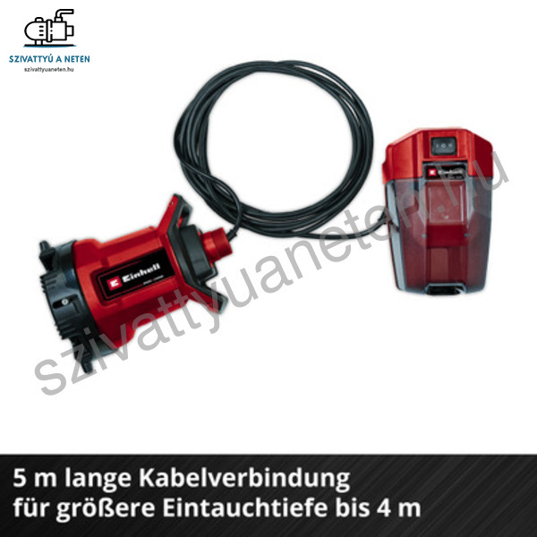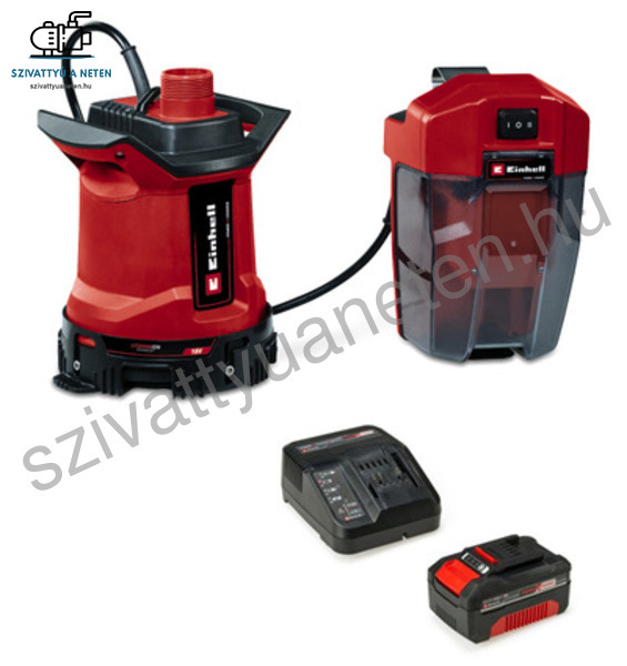 Akkumulátoros szennyezett vízszivattyú. Einhell GE-DP 18/25 LL LI-KIT 4,0 akkus szivattyú szennyezett vízre és tisztavízre, vízmentesítésre is, akkumulátorral és töltővel.