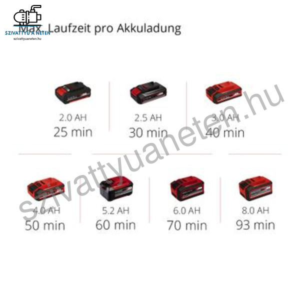 Az Einhell GE-SP 18 LL LI-KIT 4,0 maximális függőleges emelési magassága 8 méter. A maximális vízszállító képessége pedig 4500 liter/óra. A vízbe meríthetősége 4 méter. A folyadékhőmérséklet maximum +35 fok lehet. Súlya mindössze 3,3 kg. Kizárólag tiszta édes víz szivattyúzására alkalmas, szennyeződésektől mentesen. A víz kiszivattyúzását egészen 1 mm-es szintre képes elvégezni!