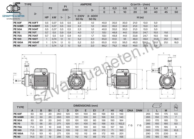 A Foras PE 90 T periférikus szivattyú kifejezetten a lakossági és ipari felhasználásra öntözésre, vízellátási feladatok elvégzésére, rendszer feltöltésekre tervezett szivattyú. Perifériás térfogat-kiszorításos szivattyú elülső szívással (PE) kis háztartási rendszerekhez és egyszerű ipari alkalmazásokhoz. A kiváló minőségű alapanyagoknak köszönhetően tartós és megbízható szivattyú. A szivattyú ház öntvényből készül, a mögötte található motortartó szintén öntvényből. A járókerék, amely a folyadékot továbbítja bronzból készül. A motortér védelméről vízbehatolás ellen jó kopásállóságú kerámia-grafit tengelytömítés gondoskodik, mely természetesen cserélhető. A Foras PE 90 T motortengelye kiváló minőségű AISI 416 rozsdamentes acél, tartós és erős. A maximális folyadékhőmérséklet amit ezzel a periférikus szivattyúval szivattyúzni lehet + 90 fok. A Foras PE 90 T periférikus szivattyú használható akár nyomásfokozásra is, de ez esetben figyelembe kell venni, hogy a szivattyúházban megengedett maximális nyomás értéke nem haladhatja meg a 9 bar nyomást. A Foras PE 90 T szivattyú kétpólusú indukciós motorja F szigetelésű, réz tekercseléssel készül, IPX4 védettséggel. Koptató hatásoktól mentes tiszta folyadék szivattyúzására, mely kémiailag nem agresszív a szivattyú anyagaival szemben.
