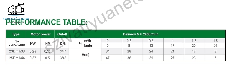 A Frog 2SDm 1/44 búvárszivattyú csőkút szivattyú 370W-os motorral rendelkezik. Maximális emelőmagassága 47 méter. A szállítási teljesítmény maximum 25 liter/perc. Ideális a kis átmérővel rendelkező fúrt kutakhoz, és abban az esetben is ha a víz hozama a kútnak alacsony.