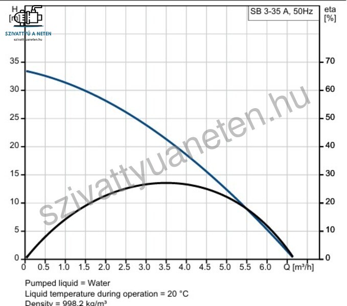 A Grundfos SB 3-35A egy tiszta víz szivattyúzására tervezett ásottkút szivattyú, háztartási és esővíz alkalmazásokra. Bemerítve csendes, és ezért zajtalan alternatívája a felszínre telepített szivattyúknak. A szivattyú kiváló minőségű kompozit és rozsdamentes acél anyagokból készült, amelyek korrózióállók. A Grundfos SB 3-35A fel van szerelve egy 15 m tápkábellel, a maximális telepítési mélysége 10 m a vízszint alatt, ahol a folyadékhőmérséklet tartománya 0 °C és 40 °C közötti. A Grundfos SB 3-35A ideális a kútban vagy földbe helyezett tartályokban való használatra, mivel könnyen és egyszerűen telepíthető. A maximális részecskeméret 1 mm. Az egyfázisú, 230V modell hatékony védett a váratlan túlterhelés ellen a beépített hővédelem révén. A szivattyúban beépített hővédelmet helyeztek el, ami azonnal leállítja a szivattyút, ha az túlmelegszik. Miután lehűlt, a szivattyú automatikusan újraindul, amikor eléri a normál hőmérsékletet.
