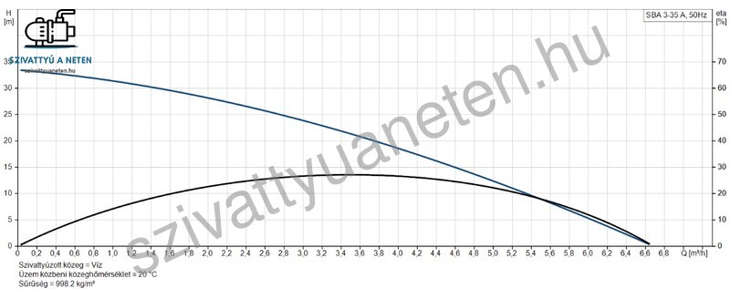 Grundfos SBA 3-35A automata ásottkút szivattyú, amelyet tiszta víz szivattyúzására terveztek háztartási használatra. Az SBA a bevált SB platformra épül és beépített szabályozó egységgel készül. Ez szükségtelenné teszi egy külső szivattyú szabályozó elhelyezését a házban. Bemerítve csendes, és ezért zajtalan alternatívája a felszínre telepített szivattyúknak. A szivattyú kiváló minőségű kompozit és rozsdamentes acél anyagokból készült, amelyek korrózióállók. A Grundfos SBA 3-35A fel van szerelve egy 15 m tápkábellel, a maximális telepítési mélysége 10 m a vízszint alatt, ahol a folyadékhőmérséklet tartománya 0 °C és 40 °C közötti. A szivattyú automatikusan indul, ha a csővezetékben a nyomás 2,2 bar alá esik. ( csap nyitásakor) A szivattyú automatikusan megáll, ha eléri a maximális nyomást. ( csp zárásakor) Az SBA 3-35 A ideális a kútban vagy földbe helyezett tartályokban való használatra, mivel könnyen és egyszerűen telepíthető. A maximális részecskeméret 1 mm. Az egyfázisú modell hatékony védett a váratlan túlterhelés ellen a beépített hővédelem révén. A szivattyúban beépített hővédelmet helyeztek el, ami azonnal leállítja a szivattyút, ha az túlmelegszik. Miután lehűlt, a szivattyú automatikusan újraindul, amikor eléri a normál hőmérsékletet. Beépített úszókapcsolóval a szárazon futás elleni védelem érdekében.