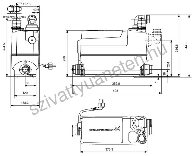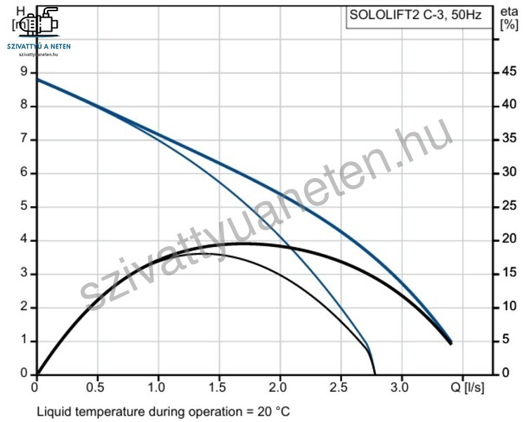 A Grundfos Sololift2 C-3 szivattyú műszaki adatai: