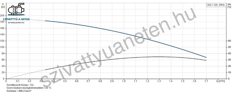 A Grundfos SQ 1-125 búvárszivattyú műszaki adatai: