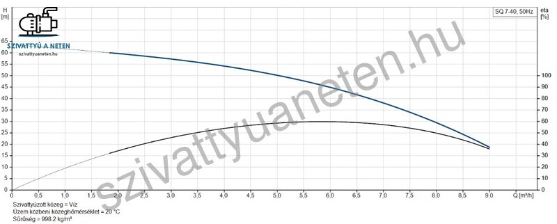 A Grundfos SQ 7-40 búvárszivattyú műszaki adatai: