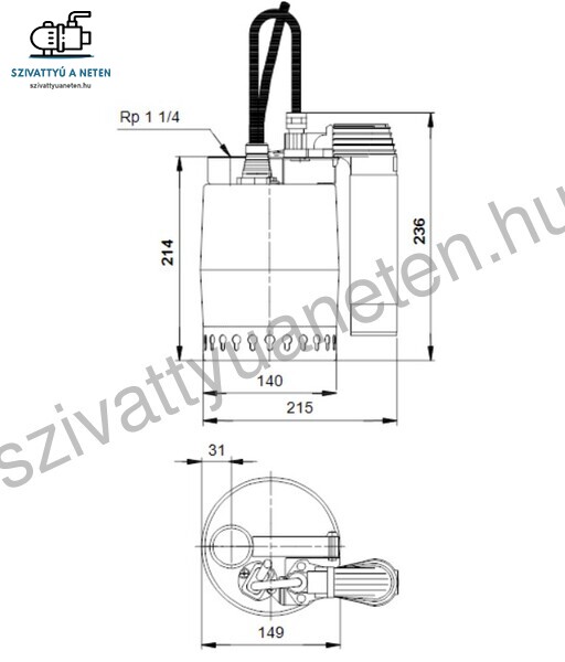 A Grundfos Unilift KP 250 AV1 10M szivattyú műszaki adatai: