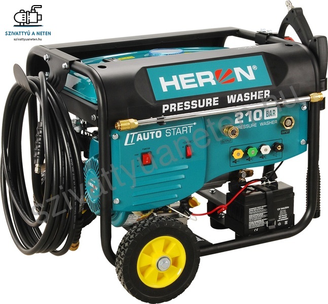 A benzinmotoros HERON HPW 210 magasnyomású mosót a különösen nagy kimeneti víznyomás, 210 bar jellemzi, ami garantálja a nagy tisztítási teljesítményt. A magasnyomású mosóval kő, fa, fém, műanyag stb. felületeket (pl. járdát, teraszt, épület homlokzatot, kerti