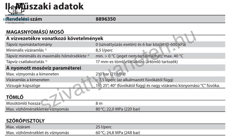 A Heron HPW 210 magasnyomású mosó legfontosabb műszaki paraméterei