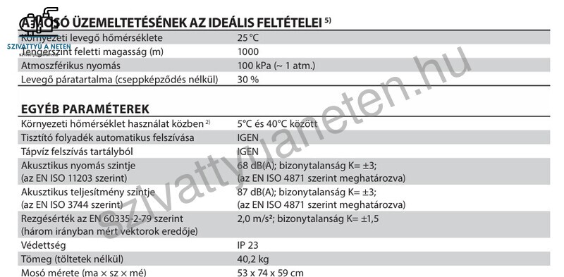 A mosó automatikusan adagolja (felszívja) a hatékonyabb tisztítást biztosító tisztító folyadékot. A vízszivattyú funkció lehetővé teszi, hogy a berendezés ott is használható, ahol nincs vízvezeték (víz kiszívása vödörből vagy hordóból).