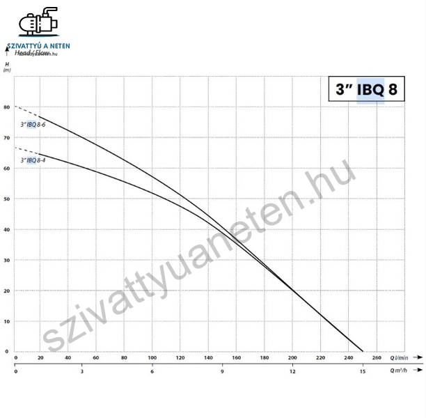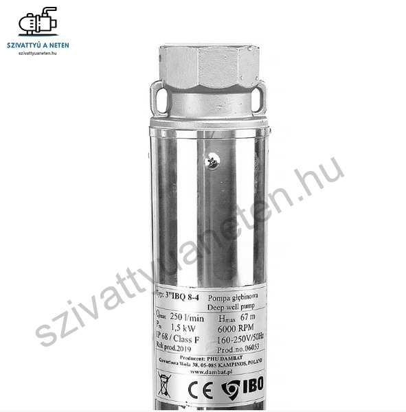 Az IBO 3 IBQ 8-6 többfokozatú búvárszivattyút, csőkút szivattyút fúrt kutakban és nyílt vízi tározókban való működésre tervezték. Más csőbúvárszivattyúkkal ellentétben az IBQ fejlett energiatakarékos motorokkal rendelkezik, állandó mágnessel és frekvenciaváltóval. Ennek eredményeként a motor max. 6000 ford./perc fordulatszámot és nagyon nagy teljesítményt ér el. Az állandó mágnesekkel és inverterrel ellátott motor kialakításának számos előnye van a hagyományos szivattyúkkal szemben. Ezek a következőek. Energiamegtakarítás a motor és a szivattyú nagy teljesítményének köszönhetően. Ugyanazon hidraulikus nyomás és teljesítményparaméterek elérésével az IBQ szivattyúk olyan motorokkal is használhatók, amelyek körülbelül 20 %-kal kisebbek, mint a hagyományos szivattyúkban használt motorok. Szárazonfutás-elleni védelem. Az inverter elektronikája szabályozza a motor áramfelvételét. Ha specifikus szárazonfutást észlel, a motor leáll. Egy bizonyos idő elteltével a szivattyú megpróbál automatikusan újra indulni, és működése folytatódik,ha a víz beáramlás helyreáll. Lágy-indítás, aminek következtében a vízütésnek a hidraulikus rendszerre gyakorolt negatív hatása megszűnik, ezzel pedig jelentősen csökken a motor és a szivattyú mechanikai kopása, valamint a lágy indításnak köszönhetően a bekapcsolási áram nincs hatással az elektromos hálózatra. A hagyományos megoldásoknál a motor állandó működési paramétereinek eléréséhez gyors indításra van szükség. Indításkor a motor a normál üzemi áram többszörösét veszi fel a működés első néhány másodpercében (bekapcsolási áram). Ez feszültségingadozásokat eredményezhet az elektromos hálózatban, ami befolyásolhatja a hálózathoz csatlakoztatott egyéb eszközök működését, kiolvadhatnak a biztosítékok, és kiéghetnek a vezérlőegységek elektromos csatlakozásai. Általában a szivattyú hidraulikus paraméterei indításkor pillanatnyilag magasabbak a névlegesnél, ami azt jelenti, hogy az üzemelés első másodperceiben a névlegesnél magasabb paraméterekkel (nyomás, áramlás) rendelkező, adott hálózatra tervezett víz kerül a rendszerbe. Ezt hidraulikus sokknak nevezik. Az ismételt hidraulikus sokk a vízellátó rendszer hidraulikus alkatrészeinek túlzott kopásához vezet. Egy másik hátrány, amelyet a lágy-indítás megszüntet, a motor mechanikai és elektromos kopása. A vízütés fokozott mechanikai terhelést okoz a motoron és a szivattyún, a nagy indítóáram pedig gyengíti a motor belső szigetelését. A motorok viszonylag nagy feszültségingadozással működhetnek, egyfázisú motoroknál 160-250 V, háromfázisú motoroknál 320-450 V. Az IBQ szivattyúk hagyományos szivattyúkhoz képest kisebb méretei lényegesen alacsonyabb fúrási és szerelési költségeket eredményeznek.