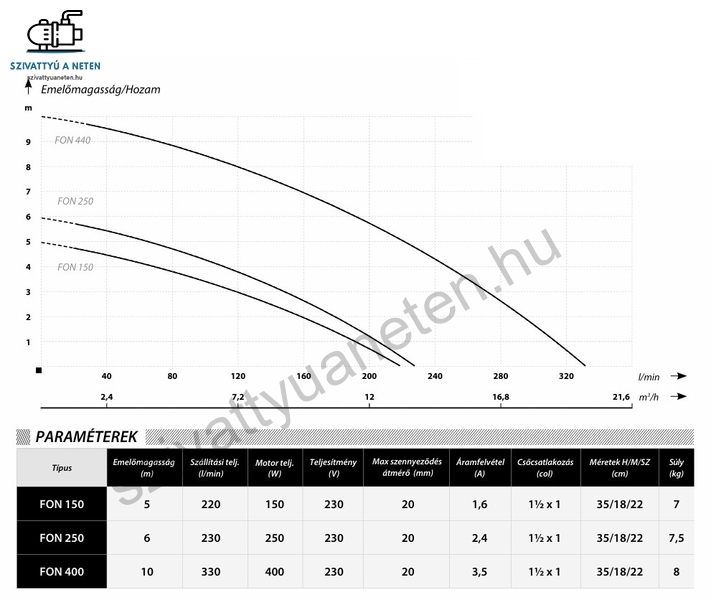 Az IBO FON 250 egy merülő motoros szökőkút szivattyú. A szivattyúkat szökőkutak, vízesések, patakok, tavak vízellátására, az áramló víz hatását kihasználó dekorációs elemek ellátására, valamint élelmiszer-feldolgozó üzemekben és mezőgazdasági termelésben használják tavak és mezők lecsapolására. A szivattyúk nagy hatásfokú motorral és beépített hővédelemmel rendelkeznek.
