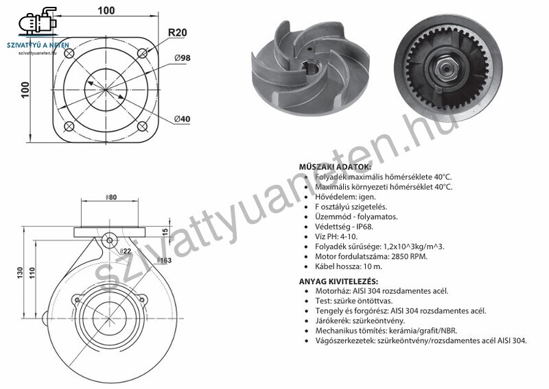 Tengely és forgórész: AISI 304 rozsdamentes acél