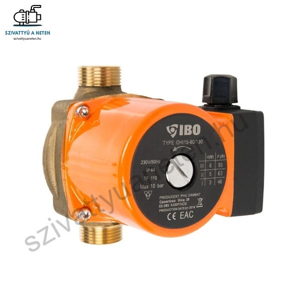 Az IBO OHI 15-60/130 BR csak ivóvízhez, használati melegvízhez használható keringető szivattyú! ( HMV szivattyú) A szivattyú 3 sebességes motorral rendelkezik a működési paraméterek beállításához a felhasználó igényei szerint. Az IBO OHI 15-60/130 BR bronz testtel kapható. A kialakításnak és a felhasznált kiváló minőségű anyagoknak köszönhetően a szivattyú nagyon csendes működés közben.