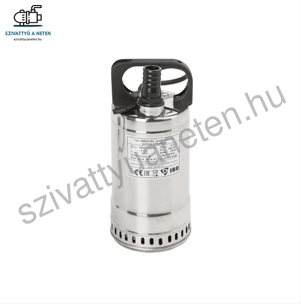 Merülő vízmentesítő szivattyú tiszta vízre. IBO SWQ 180 vízmentesítő szivattyú úszókapcsoló nélkül 120 mm-es külső átmérővel.