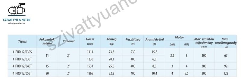 Kiváló minőség, megfizethető ár, IPRO 4 COLL 12/030T búvárszivattyú fúrt kúthoz. IPRO 4 COLL 12/030T három év magyar garanciával.