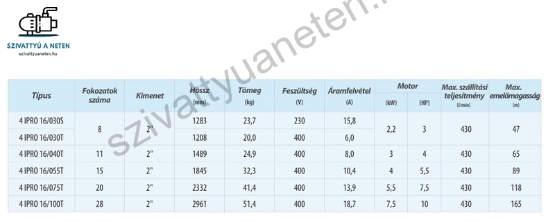 Az IPRO 4 Coll 16/030T ideális a mezőgazdasági öntözésre, lakossági öntözésre, vízellátási feladatokhoz. Kiváló ár-érték arány, jó homoktűrő képesség.