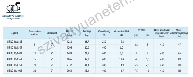 Az IPRO 4 Coll 16/055T ideális a mezőgazdasági öntözésre, lakossági öntözésre, vízellátási feladatokhoz. Kiváló ár-érték arány, jó homoktűrő képesség.