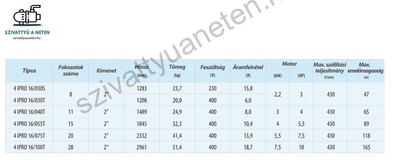 Az IPRO 4 Coll 16/075T ideális a mezőgazdasági öntözésre, lakossági öntözésre, vízellátási feladatokhoz. Kiváló ár-érték arány, jó homoktűrő képesség.