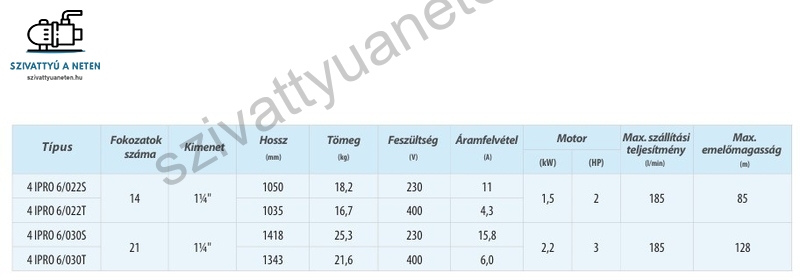 Kiváló minőség, megfizethető ár, IPRO 4 COLL 6/030T búvárszivattyú fúrt kúthoz. IPRO 4 COLL 6/030T három év magyar garanciával.