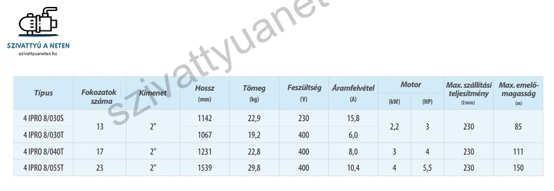 Kiváló minőség, megfizethető ár, IPRO 4 COLL 8/030S búvárszivattyú fúrt kúthoz. IPRO 4 COLL 8/030S három év magyar garanciával.