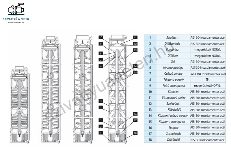 Többfokozatú búvárszivattyú 99 mm-es átmérővel, fokozott homokkal szembeni ellenállósággal. Az IPRO 4 COLL 8/030S búvárszivattyú csőkút szivattyú minimum 110 mm-es belső átmérővel rendelkező fúrt kútban használható. A megnövekedett homoktűrő képességet a lebegő járókerekek biztosítják, melyek kopásálló anyagokból készülnek, úgymint rozsdamentes acél és erősített műanyag. A maximális homoktartalom a vízben legfeljebb 5 %, azaz körülbelül 500 g/m3. Olajhűtéses, újra tekercselhető motorokkal készül, melynek maximum 150 méter bemerülés engedélyezett. A kiváló ár-érték aránnyal kapható IPRO 4 Coll 8/030S motorba épített kondenzátorral és hővédelemmel rendelkezik, gyári 1 méter hosszúságú tápkábellel, melynek hosszabbítását igény esetén szakszerűen elkészítjük. Ügyfélszolgálatunkon érdeklődhet.