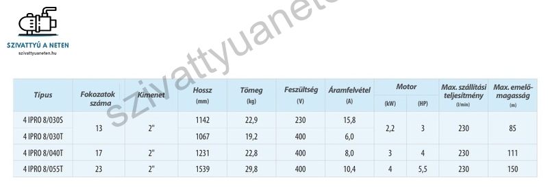 Az IPRO 4 Coll 8/040T ideális a mezőgazdasági öntözésre, lakossági öntözésre, vízellátási feladatokhoz. Kiváló ár-érték arány, jó homoktűrő képesség.