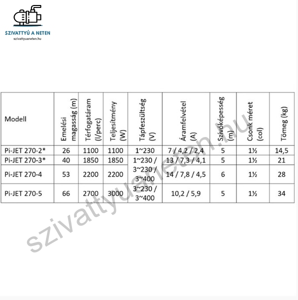 Az IPRO IQ-PRO PI-JET 270-5 400V tulajdonságai, valamint műszaki információi
